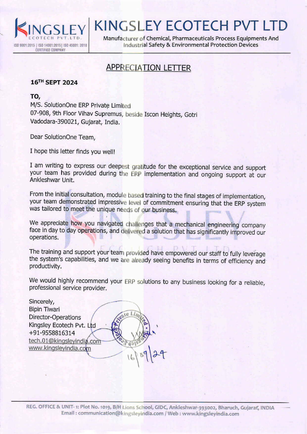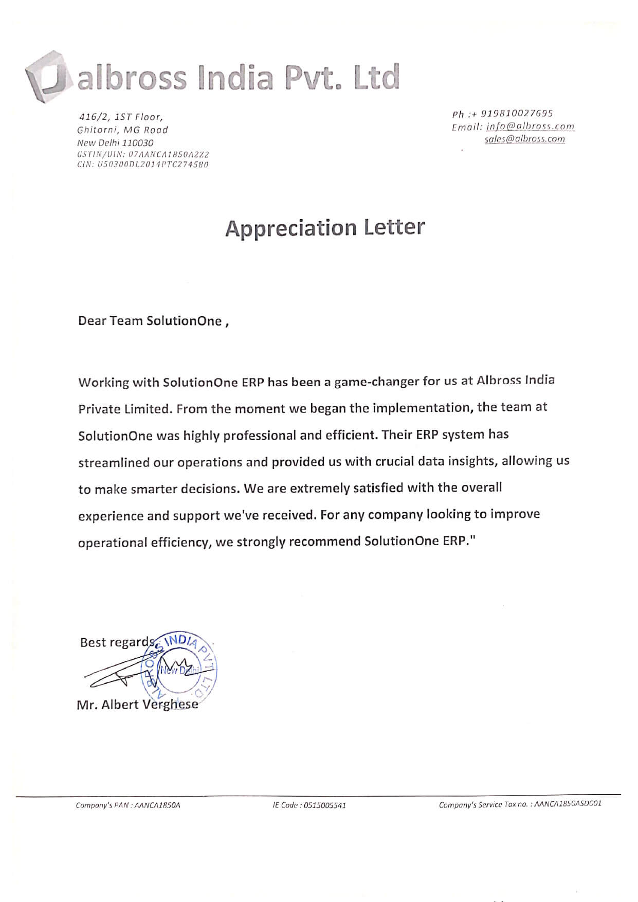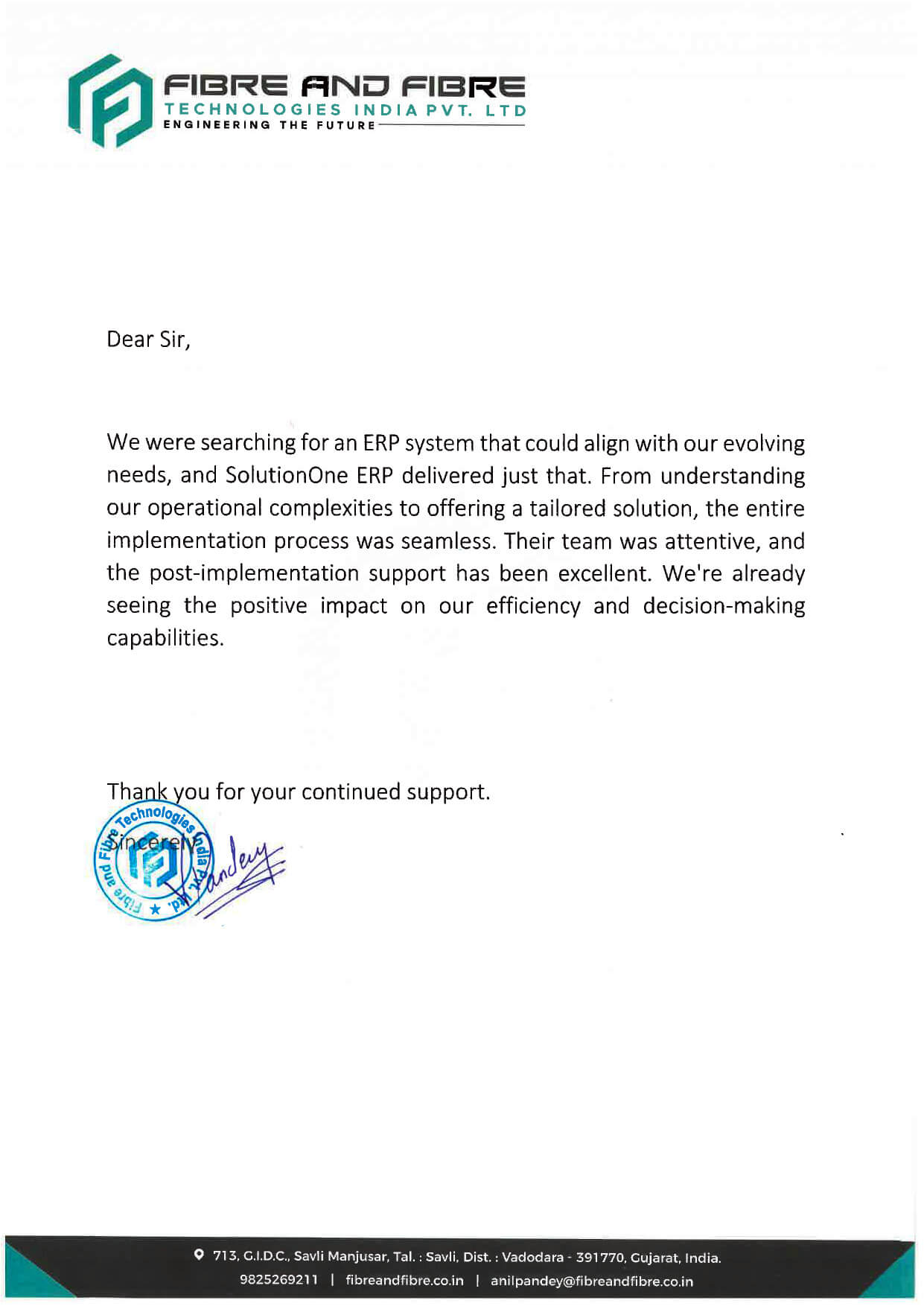 It's Our Gratitude To The "SolutionOne ERP" Team For Having Provided A User-Friendly Application; Importantly The Team Took Time To Understand Our Business Needs And Delivered The Best Of All Solutions Needed For An Organization