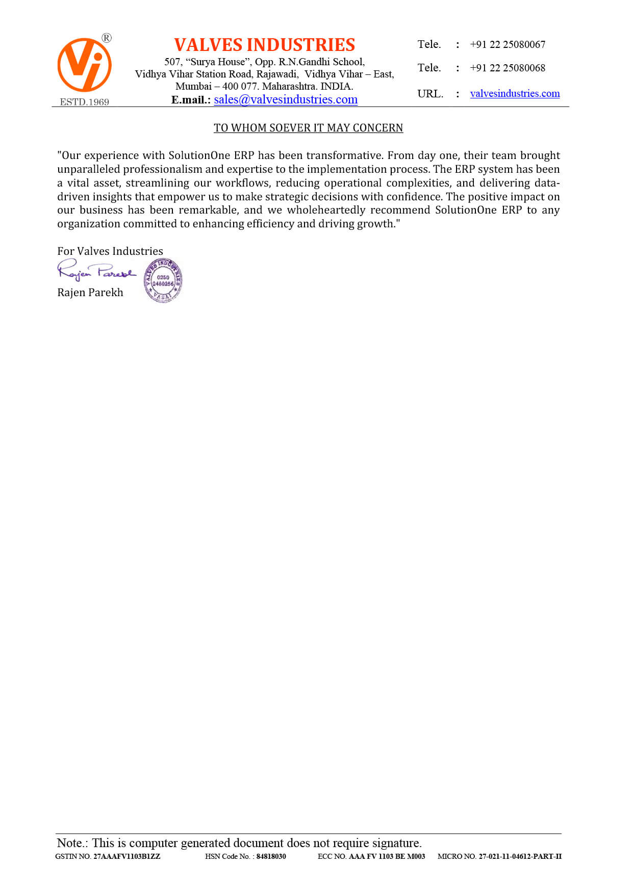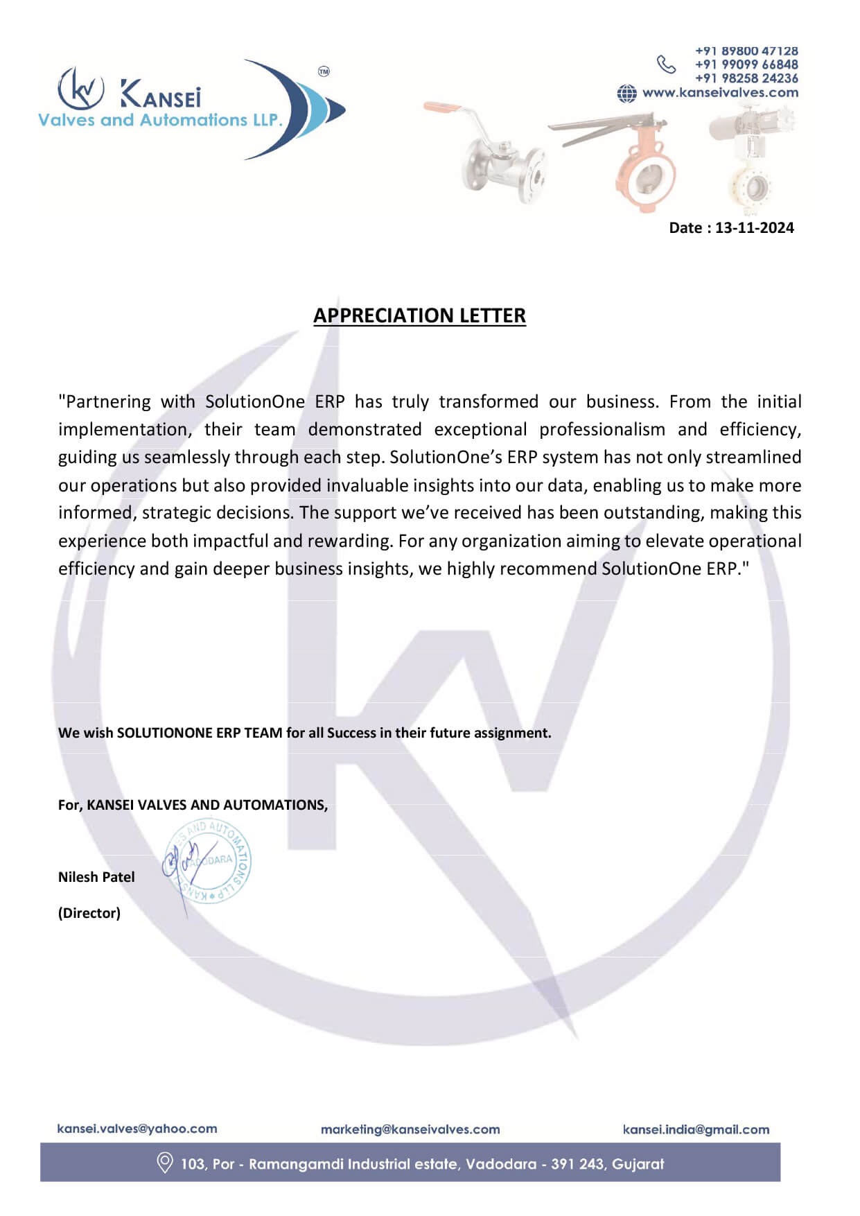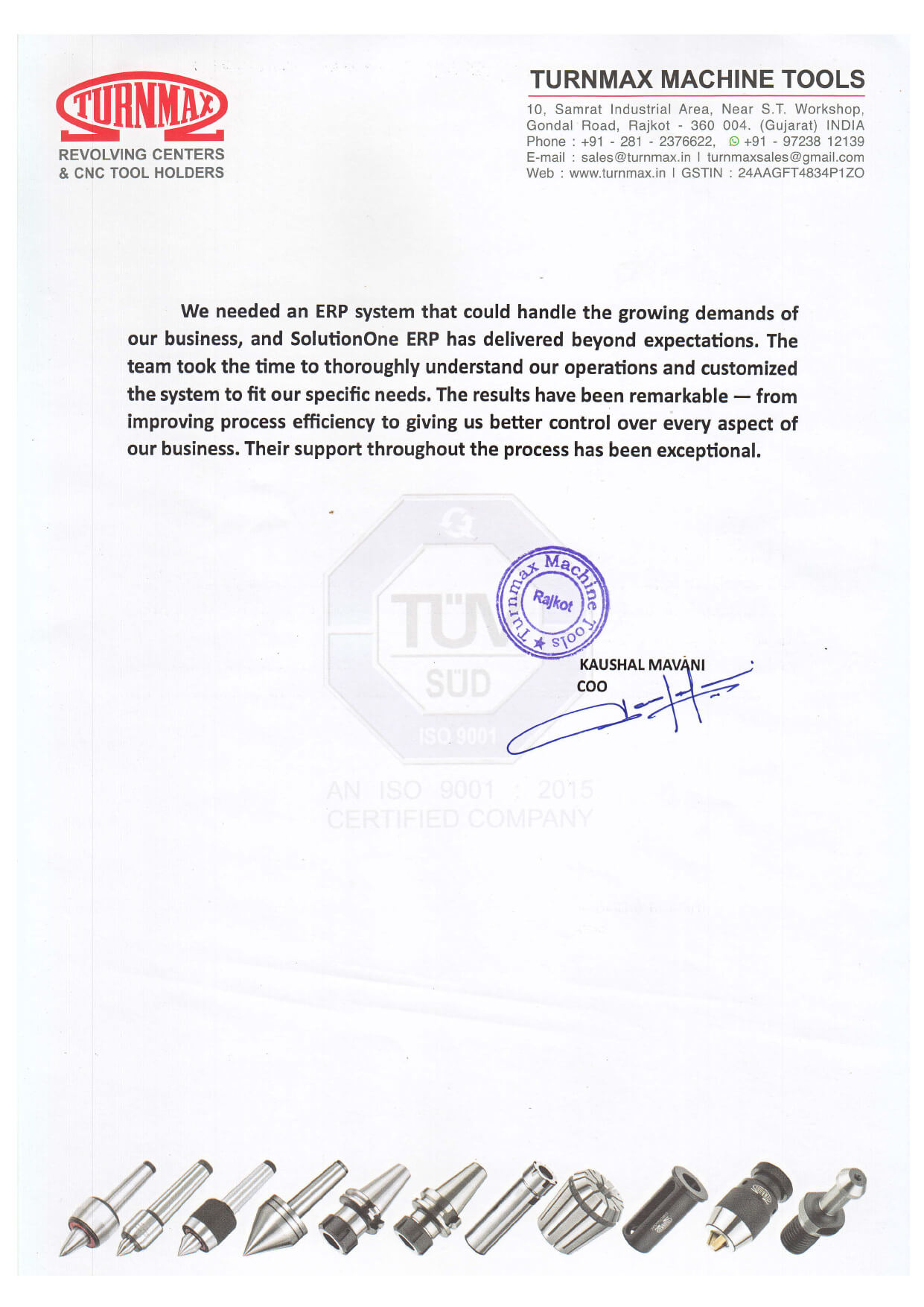 "SolutionOne ERP" Has Greatly Improved Our Operational Efficiency, Especially The Speed & Accuracy Of Order Processing; Understood The Fundamentals Of Business Process In Terms Of Measuring & Mapping The Process
