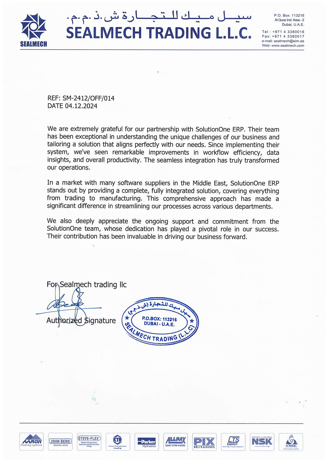 Their Business Understanding Is Impressive, And Implementation Methodology Was Well-Structured. All Appropriate Elements Required For A Successful Business Process Were Considered And Effectively Executed; Their User-Friendly Application Made Our Operations Easier, And We Proudly To Say That SolutionOne ERP Is A Partner In Our Success.”