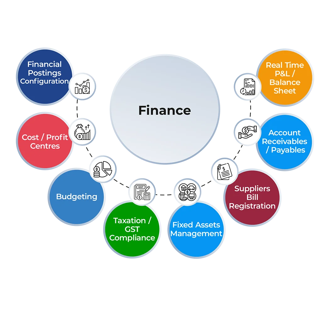 ‘SolutionOne’ Finance module offers to automate all activities being performed at Inventory level, Sales level, Purchase level & COGS level are auto managed and posted to ledgers as per finance law. Whole inflow & outflow of money/capital is managed by finance module. This module keeps track of all account related transactions like expenditures, Balance sheet, account ledgers, budgeting, bank statements, payment receipts, tax management etc. Financial reporting is easy task for this module of ‘SolutionOne’ ERP. Any Financial data that is required for running business is available on one click in Finance module.
